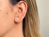 Climber je ideální pár náušnic pro ty, kteří oceňují jemnou eleganci a klasický vkus. Vyrobené ze 14karátového žlutého zlata, tyto náušnice vyzařují nadčasový šarm, doplněný fazetovanými zirkonovými kameny broušenými ve tvaru markízy, které napodobují třpyt diamantů.