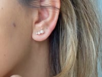 Pearls je rafinovaná volba, která spojuje klasickou eleganci s moderními detaily. Vyrobeno ze žlutého 14k zlata, každá náušnice má tři bílé perly různých velikostí uspořádané vertikálně. Tento design poskytuje jedinečný vizuální efekt, kde se perly zmenšují od 4 mm do 2 mm.