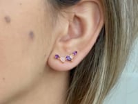 Bijuteria cu înălțimea de 20 mm și lățimea de 8 mm este realizată din Ametist și Cuarț Roz în forme și tăieturi diferite.