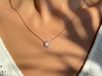 Lucy este un colier din argint 925 placat cu rodium, creat pentru a aduce o notă de eleganță și rafinament fiecărei ținute. Pandantivul său hexagonal, modern și minimalist, este împodobit cu o piatră lunii iridescentă, înconjurată de mici pietre de zirconiu care adaugă un plus de strălucire. Lungimea colierului este ajustabilă între 45 cm și 50 cm, oferind flexibilitate și confort în purtare. Cu o greutate de doar 4.1g, acest colier se așază delicat pe piele, fiind ideal pentru purtarea zilnică sau ocazii speciale. Parte din colecțiile Essentials și Dainty, Lucy este destinată celor care apreciază frumusețea subtilă și simbolismul pietrelor naturale.
