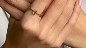 Tessa este un inel elegant, realizat din argint 925 placat cu aur galben de 2 microni, oferind durabilitate și strălucire de lungă durată. Acest inel minimalist pune în valoare un moldavit de tăietură fațetată, de culoare verde, care reflectă subtil lumina, creând un efect captivant.